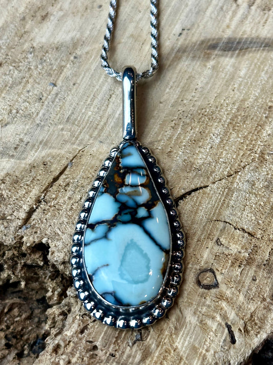 White Buffalo Tear Drop Contemporary Pendant with Clip Chain