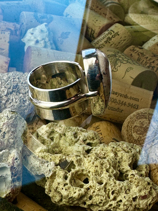 White Buffalo Large Pear Shape Contemporary Wide Band Ring Size 9.5, Adjustable