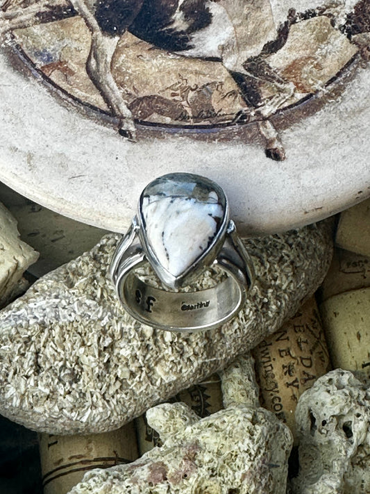 White Buffalo Small Tear Drop Contemporary Ring Size 7.5, Adjustable