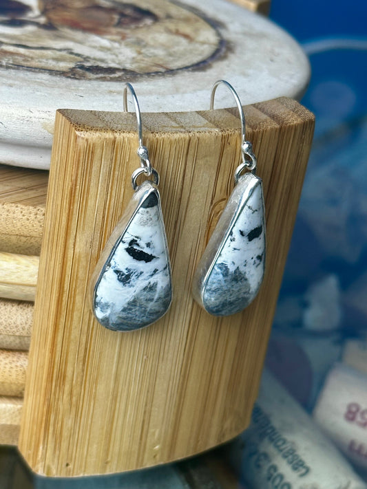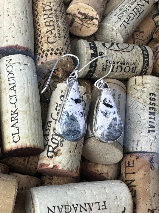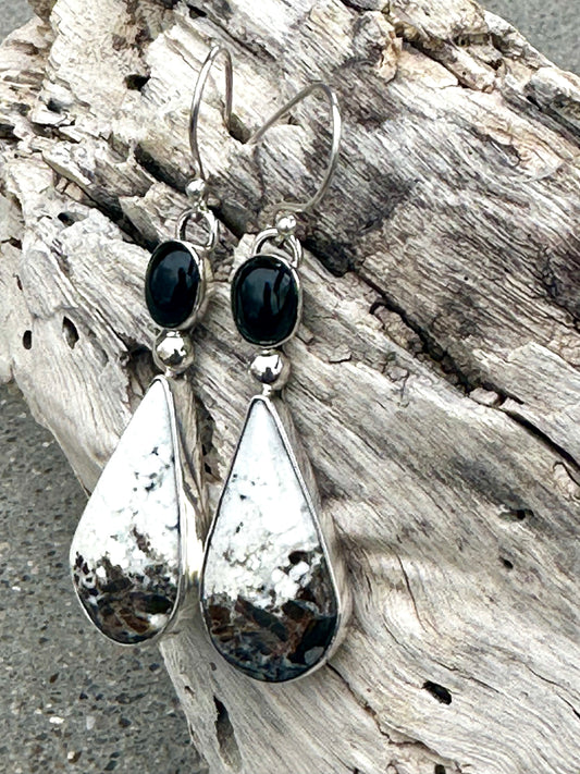 White Buffalo & Black Onyx Sterling Silver Earrings