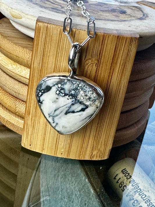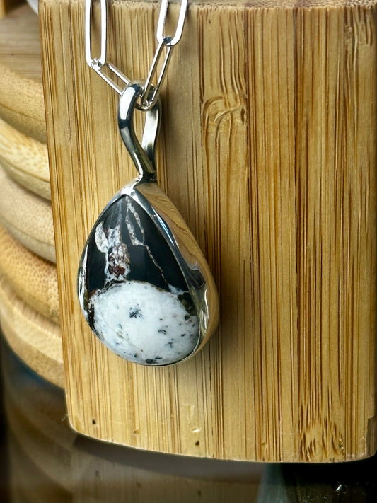 White Buffalo Tear Drop Contemporary Pendant with Clip Chain