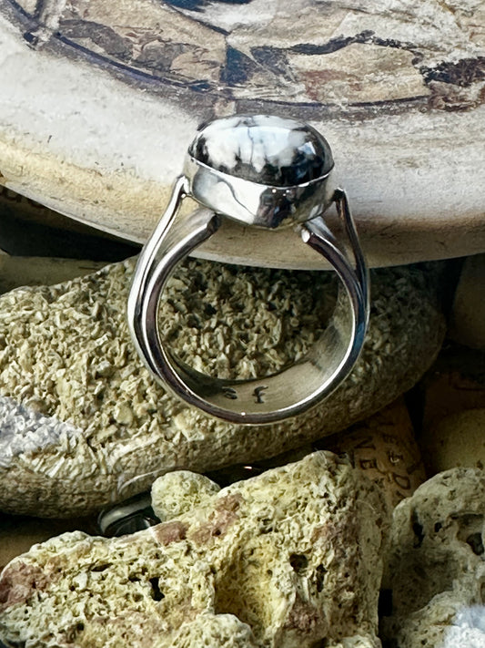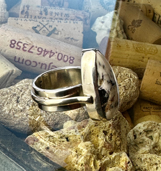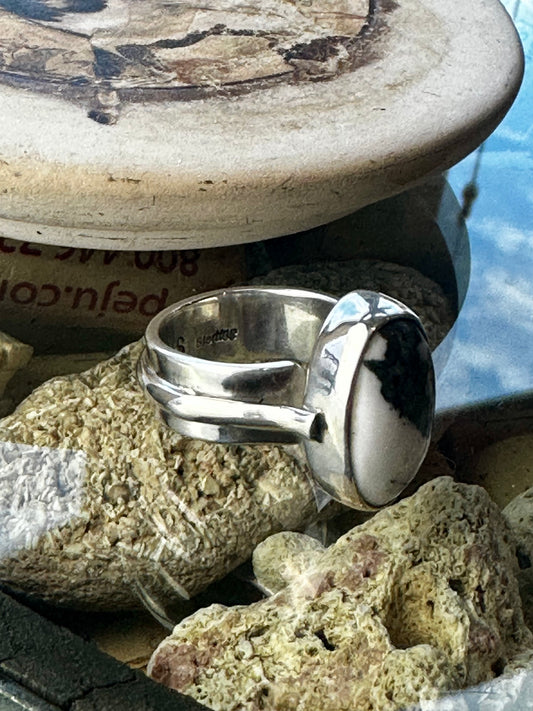 White Buffalo Small Oval Contemporary Ring Size 8, Adjustable