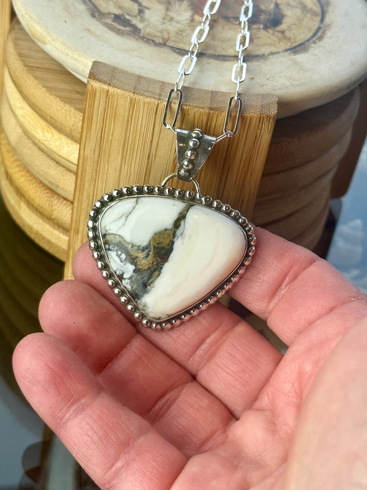 White Buffalo Large Shield Pendant with Bead Wire & Adjustable Chain